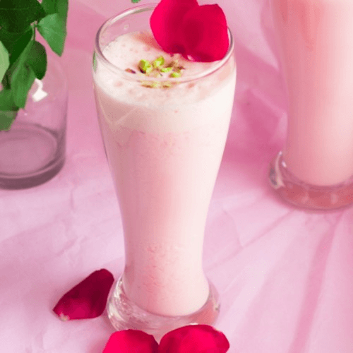 Rose lassi is a refreshing, cooling, and delicious yogurt-based drink with a delicate floral flavor and a beautiful pink hue.