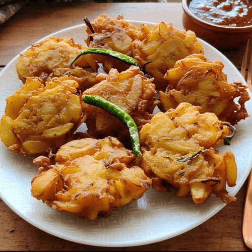 Popular Indian Tea Time snack made with potatoes, spices and gram flour.