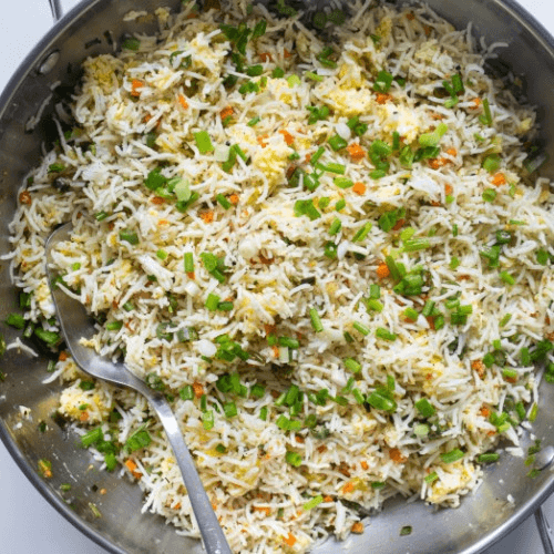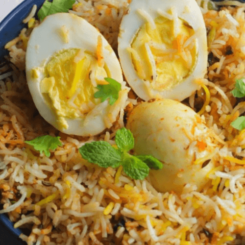 fragrant long-grain basmati rice with spiced hard-boiled eggs and caramelized onions, infused with aromatic spices