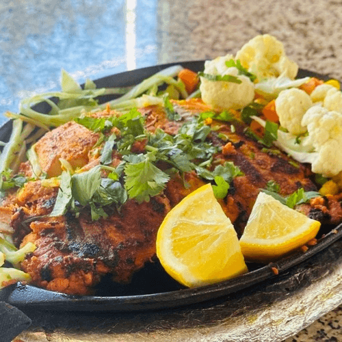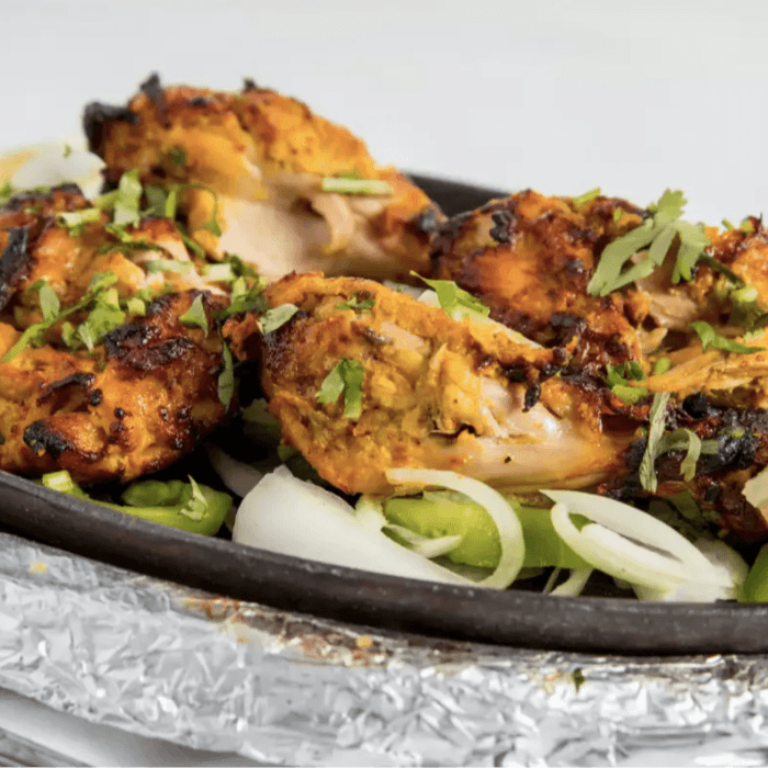 Chicken on the bone that's marinated in traditional herbs and spices. Cooked in the clay oven to delightful perfection.