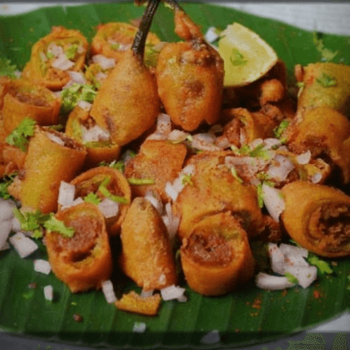 Breaded Jalapeno pepper with spices . Served with coconut and lentil chutney .