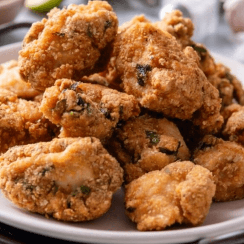 Chicken pieces dipped in mildly-seasoned batter and fried. Served with house chutneys.