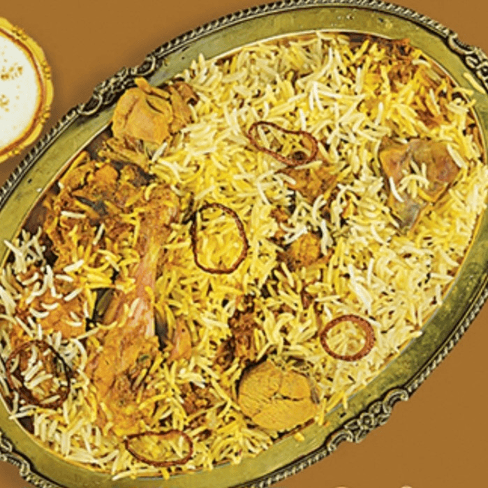 It's a fragrant, layered rice dish (biryani) made with marinated meat (chicken Tikka, Goat, Shrimp) vegetables, cooked with saffron-infused basmati rice, herbs, and spices