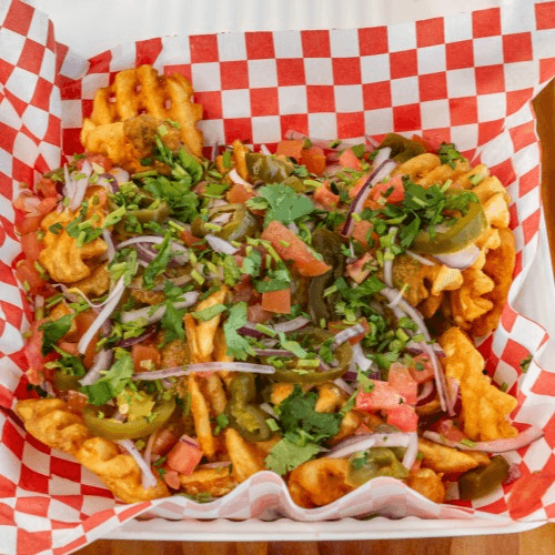 Lettuce, onions, tomatoes, cheese, homemade ranch, curry sauce & curry chicken