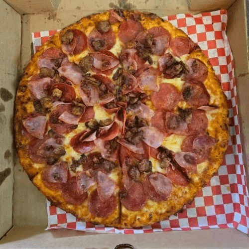 Red sauce, pepperoni, sausage, Canadian ham & bacon