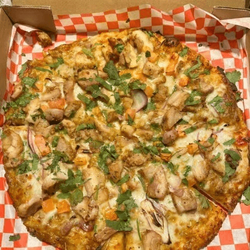 White sauce, onions, tomatoes, bell peppers, fresh cilantro & tandoori chicken